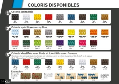 Choisissez votre coloris standard et customisez-le à votre image parmi les coloris standards de filets (Code F) ou de fuseaux
